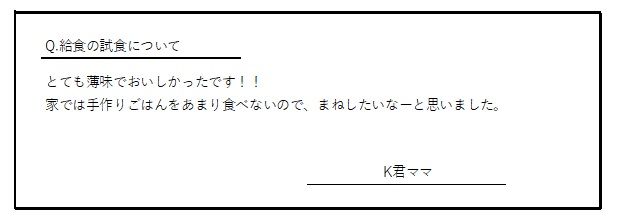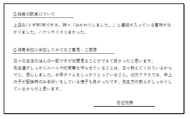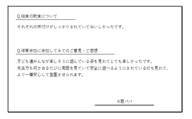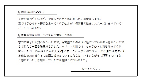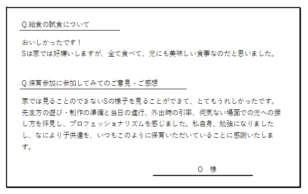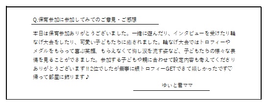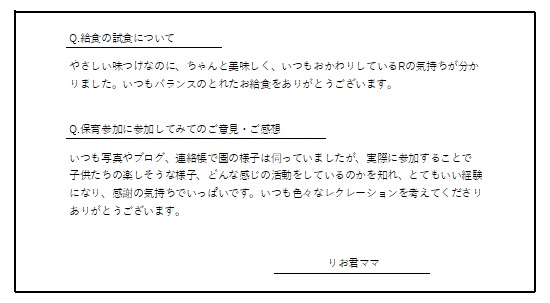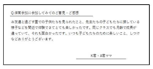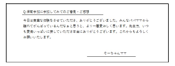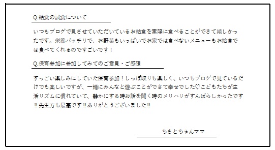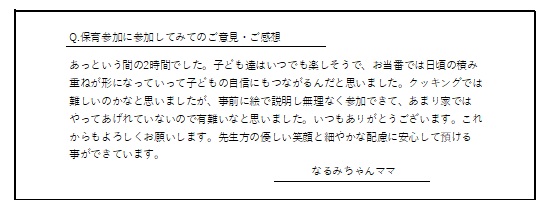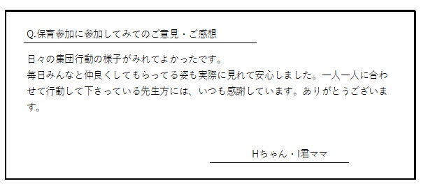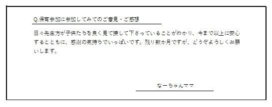 在園児 ・ 卒園児の保護者様より頂いたコメントです。