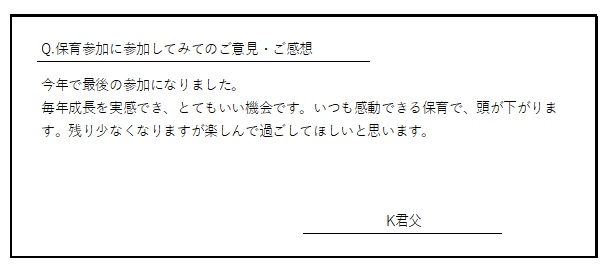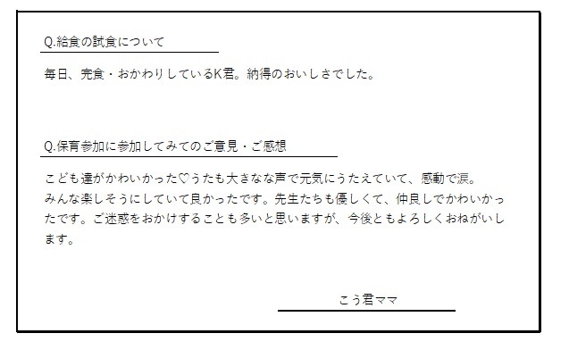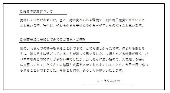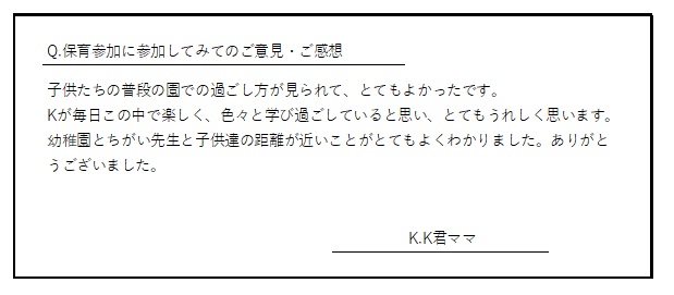 令和2年度 保育園Kanoa卒園児の保護者様より