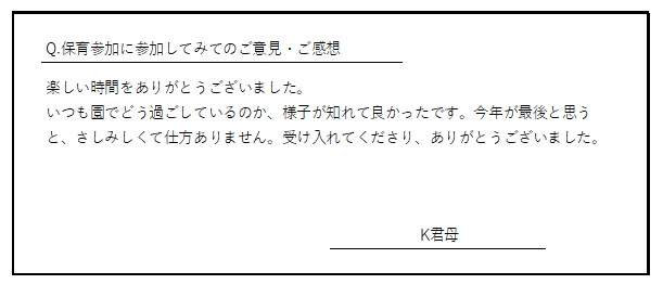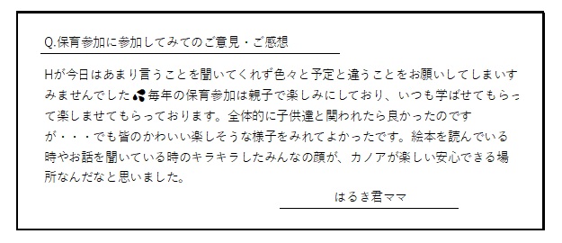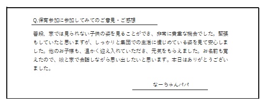 在園児 ・ 卒園児の保護者様よりいただいたコメントです。